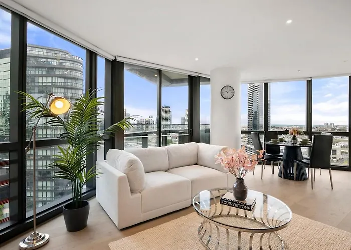 Docklands Waterfront Luxury Views With Pool And Gym Apartment Melbourne is situated right in the centre of Melbourne, about a 25-minute walk from Crown Melbourne Casino. The spacious 90 m² apartment with an indoor pool is within a few blocks of Docklands Park.